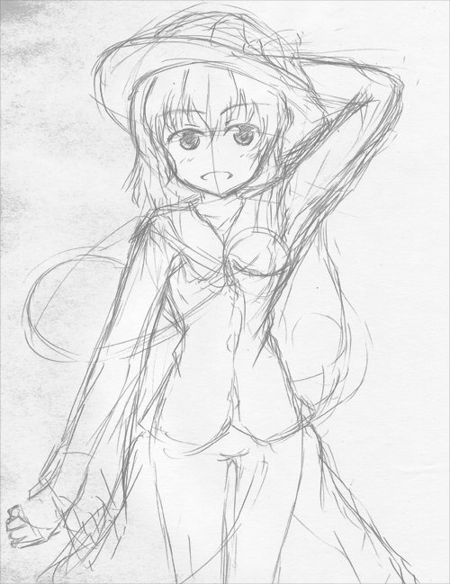 まだこっから線画にして、スキャナで読み込んで色付けという工程が残っているので